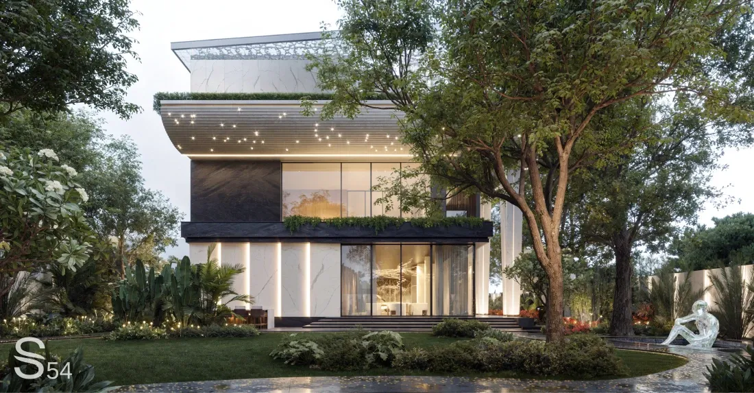 Площадь: 2100 м² Заказать проект на официальном сайте: https://studia-54.com/?utm_source=dzen_article Наша официальная группа Вконтакте: https://vk.com/studia54buro Концепция Secret Garden Мы сделали сад продолжением архитектуры: мягкие линии, природные акценты, глубокие оттенки камня и большое внимание к деталям. Пространство задумано как тихий маршрут — от солнечных лужаек к тенистым зонам и небольшим приватным дворикам. Главные акценты В северо-восточной части сада расположился водопад — ключевой элемент композиции. Черный камень с золотыми прожилками, отражения воды и металлические скульптуры создают ощущение движения и роскоши.