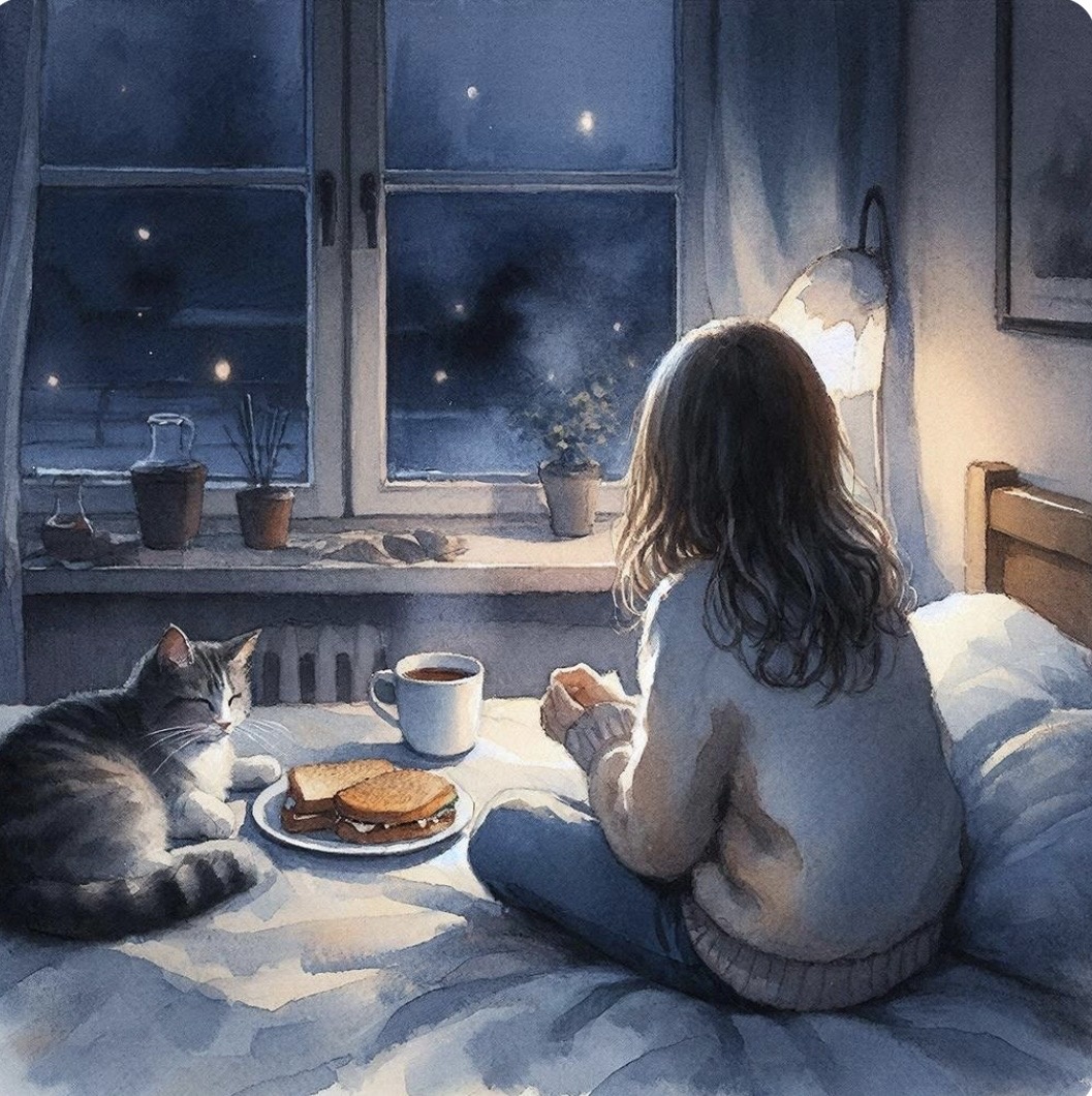 Оба засмеялись. Тихон, как будто понял что над ним, посмотрел на Вику как на предателя, и, немного обидевшись, пошёл и лёг на её кровать прямо по центру.