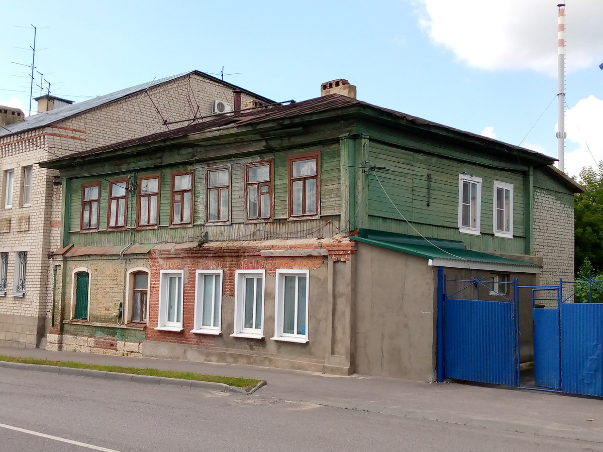 Дом жилой – двухэтажный (первый этаж – каменный, второй — деревянный) прямоугольный в плане восточным фасадом в семь осей оконных проемов выступает на красную линию ул. Мира. Оконные проемы первого этажа прямоугольные с лучковыми клинчатыми перемычками объединены подоконным кирпичным пояском. Его углы фланкированы мощными пилястрами с филенчатой нишей на всю высоту. Бревенчатые стены второго этажа прорезаны прямоугольными окнами с простыми рамочными наличниками и обшиты мелким гонтом разным способом: горизонтальным в основной плоскости и вертикальным в подоконном поясе.