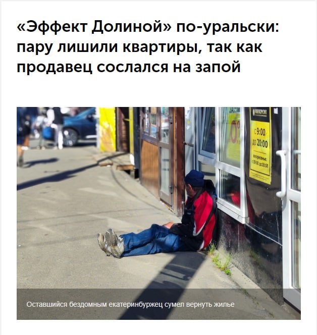 ⚡️ «Эффект Долиной» по-уральски: Свердловский областной суд утвердил вердикт, по которому супружеская пара лишилась купленной квартиры — бывший хозяин заявил, что продал её, находясь в глубоком запое. ℹ️ Альберт и Алена Со купили квартиру у риелтора Михаила Посуконько в декабре 2023 года. Они провели полную проверку: выписка из ЕГРН была чиста, жильё оказалось свободным, а оплату провели через банк. Супруги сделали ремонт и даже сдали квартиру. Но затем прежний собственник, Владимир Степанов, подал иск с требованием вернуть жильё. 🗣 Степанов заявил, что с 19 лет страдает алкоголизмом, а после смерти матери начал пить беспробудно. По его словам, собутыльники вывезли его в Верхний Тагил, где удерживали, спаивали и избивали. Момент продажи квартиры он «не запомнил». ⚖️ Риелтор Посуконько пытался оспорить эти заявления: Степанов предоставил справку о психическом здоровье, лично читал договор и получил деньги наличными под расписку, что даже было зафиксировано на фото. 👨⚖️ Однако суд в