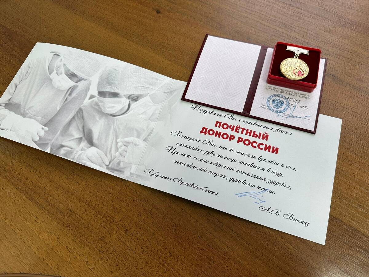 В Брянской области тридцать жителей получили почётное звание «Почётный донор России» за многократную и безвозмездную сдачу крови, спасающую жизни людей. Соответствующие удостоверения и нагрудные знаки уже поступили на областную станцию переливания крови из Министерства здравоохранения РФ. Это звание присваивается за регулярное донорство, требующее личной ответственности и готовности помогать другим. Каждый из новых почётных доноров внёс значительный вклад в здравоохранение региона, а их кровь использовалась при операциях, лечении тяжелобольных и в чрезвычайных ситуациях. Всего в 2025 году этого высокого звания удостоились 220 жителей Брянской области, что свидетельствует о развитии донорского движения в регионе.