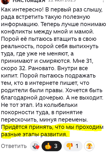 Встретила старый коммент читательницы, который 2 года назад не увидела, а он важный: