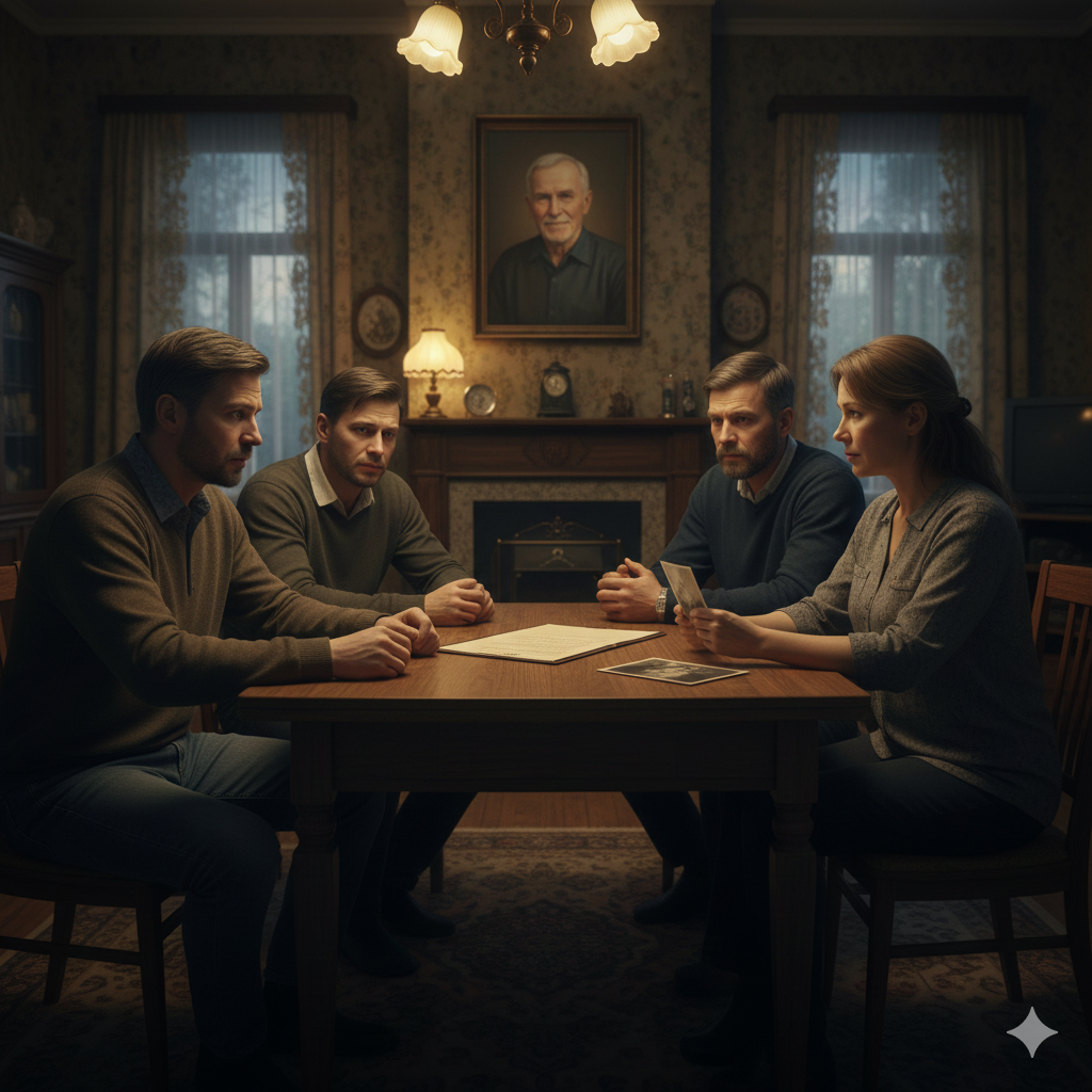 Когда умер Виктор Семёнович, его трое сыновей собрались в родительском доме, чтобы обсудить похороны и дальнейшие дела.