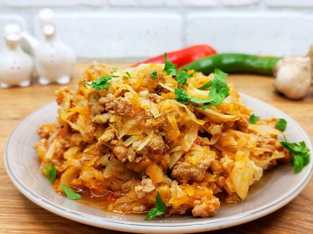 Здравствуйте, мои дорогие! Знаете, бывает такое: возвращаетесь домой уставшие, а есть хочется чего-то уютного, домашнего, но готовить целый час сил нет. Вот в такие дни меня спасает это блюдо — капуста «болоньезе», или, проще говоря, ленивые голубцы в сковороде. Минимум движений, максимум вкуса. А аромат такой, что домашние сами появляются на кухне, даже если только что уверяли, что «не голодны». Когда я впервые попробовала этот способ, была поражена, насколько легко можно получить вкус тех самых бабушкиных голубцов, не заворачивая ни одного листа. Всё готовится в одной сковороде, получается сочно, ярко и невероятно домашне. Ингредиенты Фарш мясной — 350–500 г (я использую 500 г) Морковь — 1 шт. Лук репчатый — 1 шт. Помидор — 1 шт. Томатная паста — 2 ст. л. Капуста — 500 г Соль и специи — по вкусу Масло подсолнечное — для жарки Вода — около 50 мл Рецепт Нарежьте мелкими кубиками лук и помидор. Разогрейте сковороду с растительным маслом и обжарьте лук до лёгкой золотистости. Морковь н