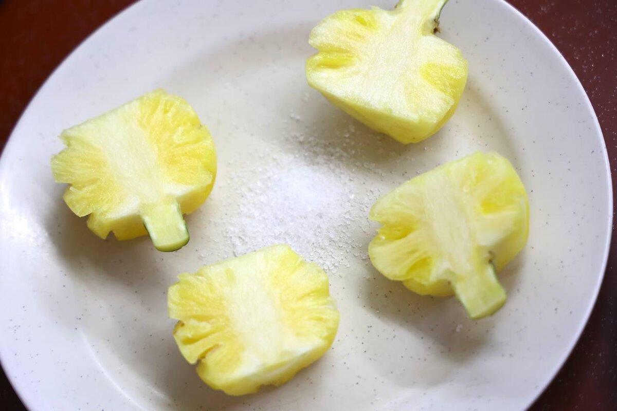 и, внезапно, едят ананасы с солью. Если что, натрий блокирует рецепторы горечи, и если его не сильно много, то обычно-горькое блюдо раскрывается новыми вкусами. Ананасы обычно острые и горькие (чем больше ананас из Португалии и спелый, тем больше острый). Как поэтично высказалась индийская дама, подававшая это блюдо в Малайзии — это чтобы вы кусали ананас, а не он вас.