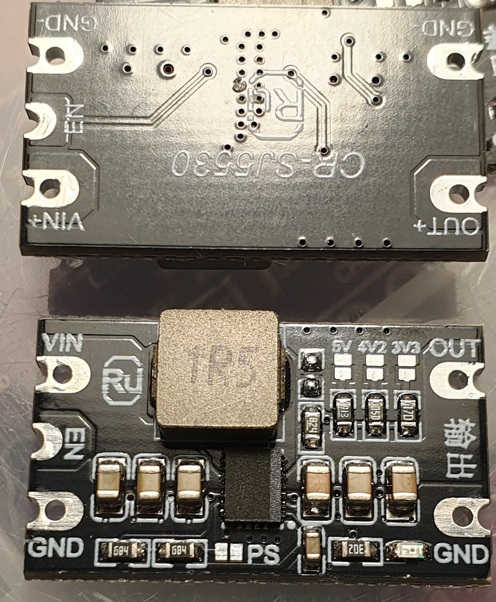 Тест модуля CR-SJ5530 с Алика Сначала тест без нагрузки, заявлена работа от 1,8 до 5,5в поэтому жестить не буду и проверю как заявлено, выходное можно выставить перемычкой есть 3 варианта 3,3в / 4,2в / 5,0в Выглядит прилично, маркировка чипа сгравирована, за это минус 1 балл.