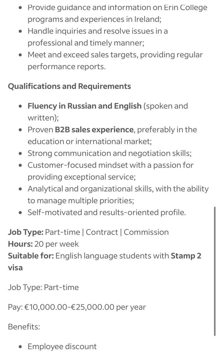 Стоит ли ехать в Дублин учить английский? Какие здесь зарплаты? Я на 100% довольна нашей школой, преподавателями и тем, как здесь все организовано. Учусь в CES Dublin school. Единственное, что я бы изменила, — это срок обучения. Сейчас я бы приехала минимум на полгода или год, как большинство моих одногруппников. И параллельно устроилась бы на работу. Во-первых, работа ускоряет прогресс в обучении, потому что ты постоянно практикуешь с коллегами и клиентами. Во-вторых, здесь хорошие зарплаты. Менеджер по продажам с русским и английским языком (работа с российским рынком) зарабатывает 10,000 -25,000 евро в год. Это полставки — 4 часа в день. Бариста — 13.50 евро в час. Бармен (полный рабочий день) — 40.000-45.000 евро в год. Да, жить здесь тоже дорого, но если цель — изучать язык, то хороший вариант. Сложно ли найти работу? Не знаю, я не пробовала, но одногруппники быстро нашли. Некоторые после университета и без опыта совсем. P.S: В Ирландии зарплата указывается сразу за год