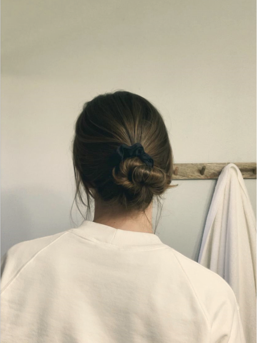 Совет: если хотите добавить объема, слегка начешите волосы на макушке перед тем, как собирать пучок. И не затягивайте слишком туго - небрежность здесь только на руку.