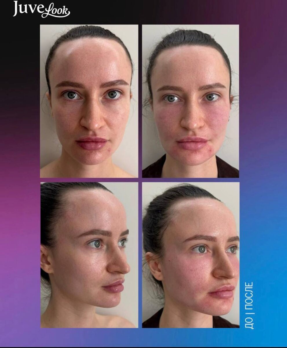 Полимолочная кислота JuveLook сразу после. Но я считаю такие фото неинформативные, так как в тканях есть отек и от травмы и от препарата. Из моего личного опыта: я ходила довольная 3 дня отеком, который красиво расположился на лице, создавая красивый объем. Потом отек спал дню к 5. И вот уже почти 4 недели прошло от процедуры. Я вижу первый результат, овал подтянулся, поры сузились, цвет лица стал светлый, плотность кожи в разы улучшилась. Планирую повторить еще через 2 месяца.