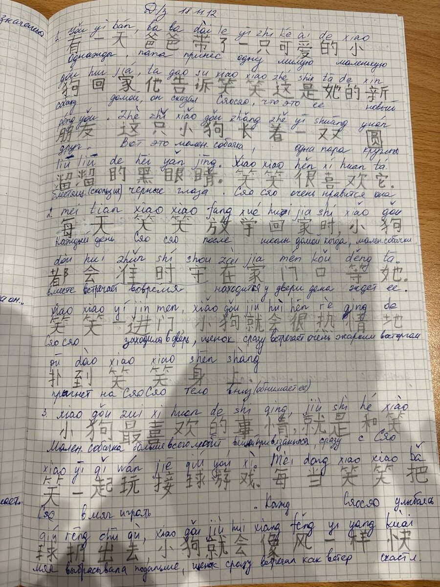 Образец примерного домашнего задания: перевод текста с незнакомыми иероглифами.