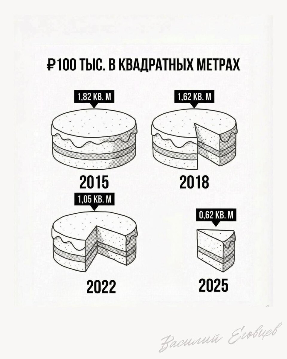 В России 100 000 рублей за 10 лет «сжались» до 0,6 квадратного метра. Покупательная способность денег относительно недвижимости упала в 2,9 раза. Это и есть честная инфляция, которую многие предпочитают не замечать. Не та, что в новостях — та, что в метрах. Десять лет назад на эти деньги можно было закрыть полноценный кусок площади. Сегодня — меньше, чем кладовку. Деньги обесцениваются всегда. Но те, кто держат капитал в метрах, а не на эмоциях, — проходят любые циклы.