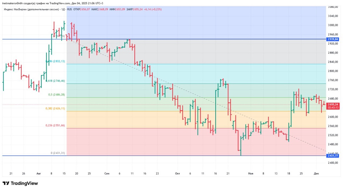 ❗️4 декабря российский фондовый рынок подрос, индекс МосБиржи укрепился на 0,2% до уровня 2657,13