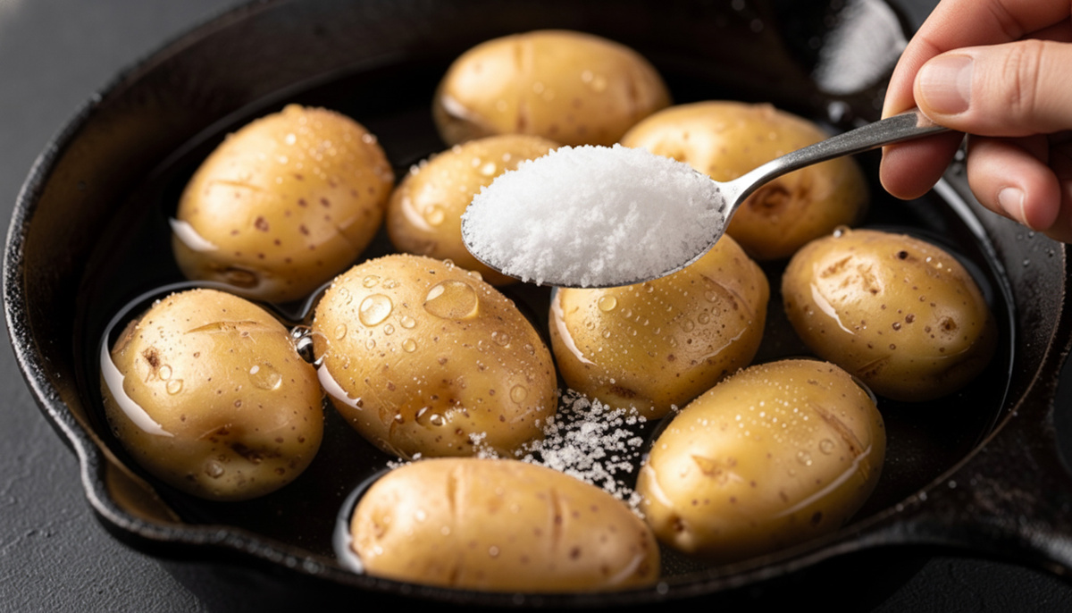 Испанский картофель «папас арругадас» — это удивительно простое блюдо, но вкус у него настолько яркий и необычный, что его легко подать и как закуску, и как полноценное блюдо. А ещё его невозможно перепутать ни с каким другим способом приготовления картофеля: он варится в большом количестве соли до полного выпаривания воды. За счёт этого картофель становится нежным внутри и покрывается тонкой солёной корочкой, которая делает вкус более насыщенным и глубоким. А настоящая магия начинается тогда, когда подаёшь его сразу с двумя соусами — мохо рохо и мохо верде. Именно так картофель едят на Канарских островах. Сначала тщательно мою 1 кг картофеля прямо губкой. Такой способ позволяет позже оставлять кожуру — она станет частью вкуса. Складываю картофель в кастрюлю, заливаю 1 литром воды и добавляю примерно 150 г соли. Соли много, но переживать не нужно — часть останется в кастрюле, а картофель впитает ровно столько, сколько нужно. Ставлю кастрюлю на сильный огонь и варю до полного выпариван