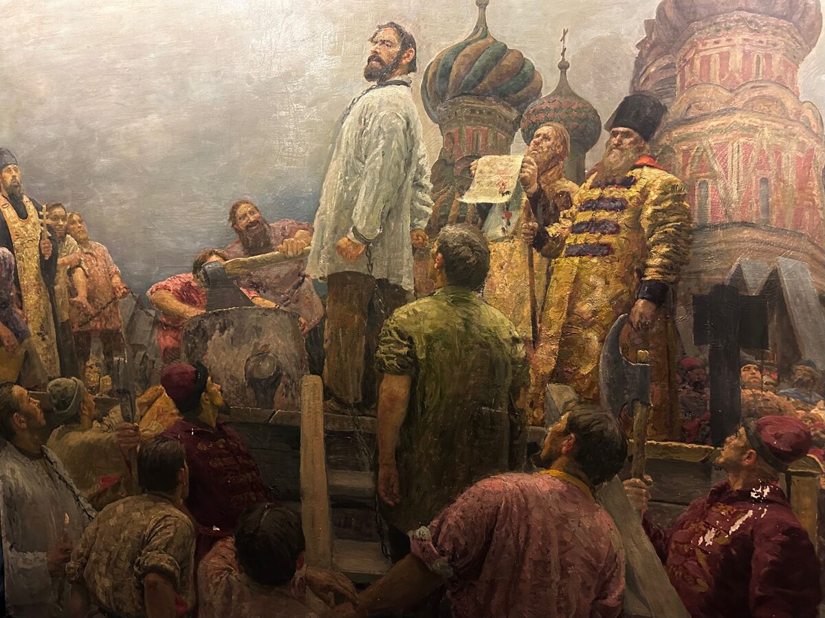 О любимом ученике Репина - художнике Гаврииле Горелове - я писал и здесь, и рассказывал о нём в «Уроках русского», и ходил к нему на Новодевичье. Вот уж полгода, как я невероятными усилиями добыл огромную его работу «Казнь Стеньки Разина». Создана она около 1913 года. Долгое время я был уверен, что она утеряна, и вдруг она объявилась. Влез в долги, но теперь она у меня. Моя книга о Разине ЗДЕСЬ.