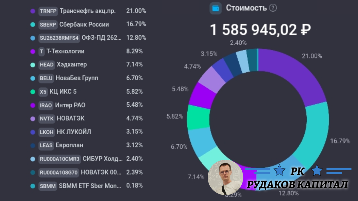 МОЙ ДИВИДЕНДНЫЙ ПОРТФЕЛЬ (Краткий обзор состояния портфеля. Актуально на 01.12.2025г.) Стоимостьтекущая:1 585 К (сначала года 1361К + 213К пополнений). 💼 Акции, облигации, резерв: 82.2%/17.6%/0.2% 📊 💼 Прибыль +0.6% без учëта дивидендов (Индекс -7.47%);👍 Тенденция: бурно реагируем на любую новость. Портфель сначала года без учëта дивидендов в символическом плюсе. ))) Разница с индексом сокращается за счëт крепких компаний в портфеле - они меньше падали, но и меньше растут. Идея в Новабев стала отрабатываться. 💪 Покупка Интер РАО была спорной, но тоже плюсует.💪 Мне было тяжело закрывать некоторые неудачные позиции, но правило действительно работает. Когда идея умерла, надо перекладываться в другие, а не ждать чуда, благодаря высвободившимся деньгам и новым идеям, я почти уже "закрыл" убытки по позициям в IT. Важная мысль - простые истины на рынке работают! Не просто так о них многие говорят, но к сожалению мало кто делает 🤓 Мои дальнейшие действия в трëх