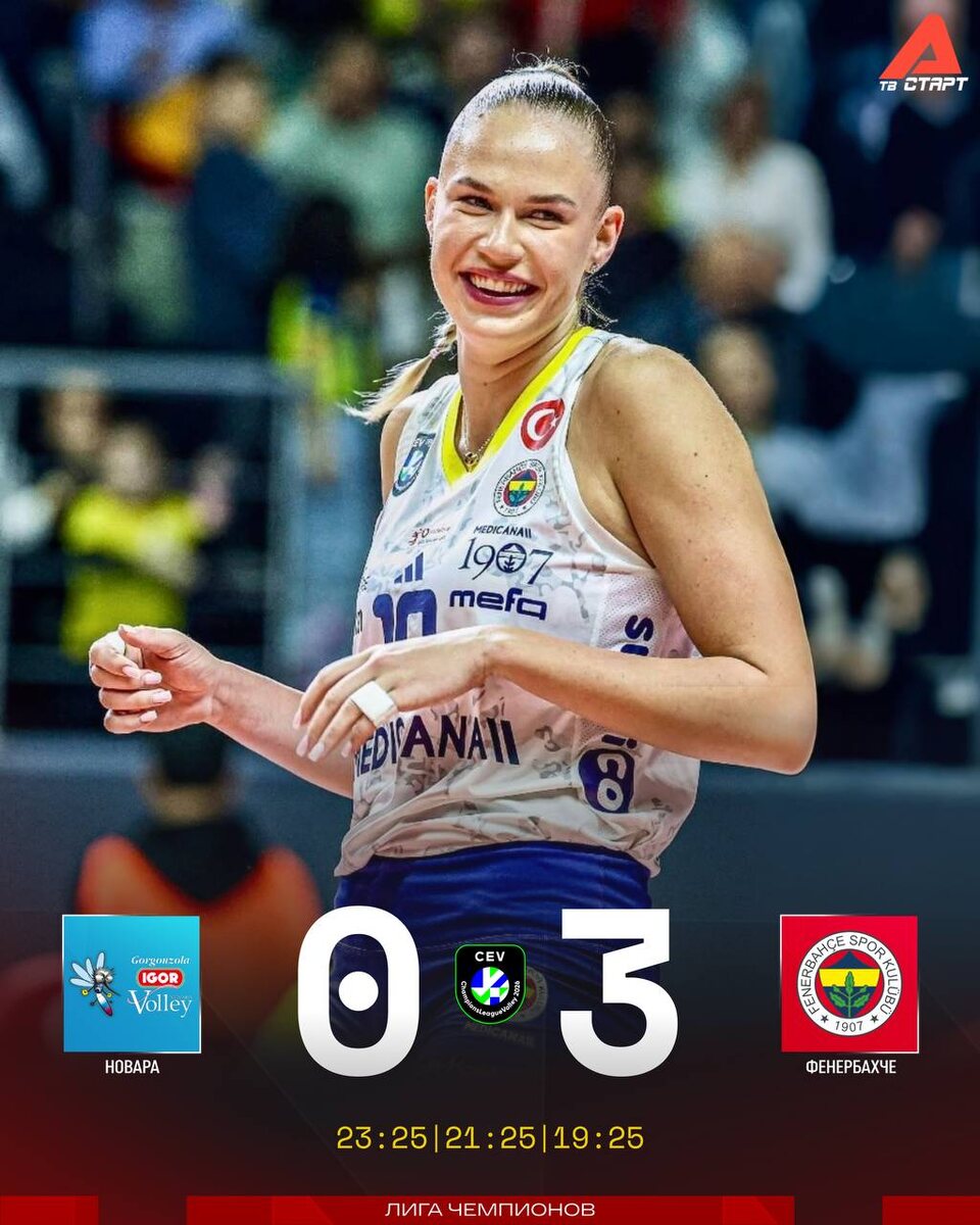 🫨 «Фенербахче» мчит на полной скорости! Команда Арины Федоровцевой добыла новую победу. И вновь наша волейболистка показала отличную игру! Стамбульский клуб уверенно идет на первом месте в своей группе ЛЧ 👊🏻 Подписывайся на ТВ СТАРТ в MAX📲