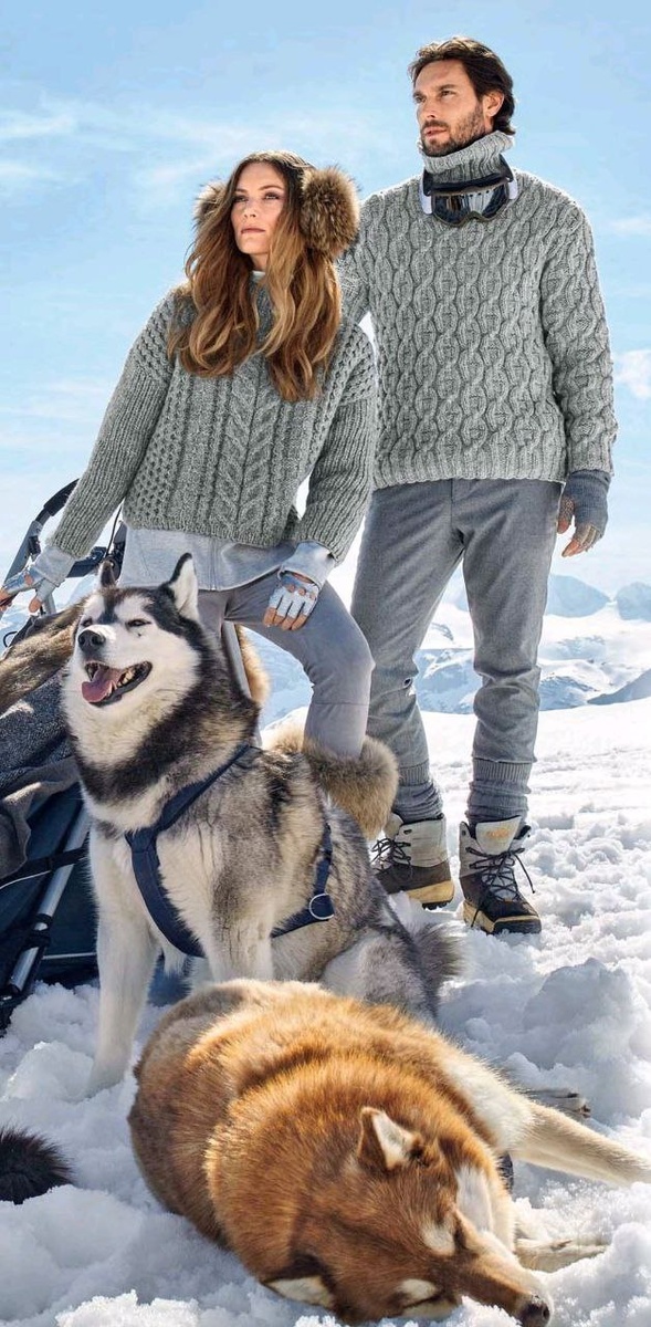 Для зимних образов характерна монохромность, однако светло-серый объемный пуловер выделяется благодаря эффективному сочетанию узоров с