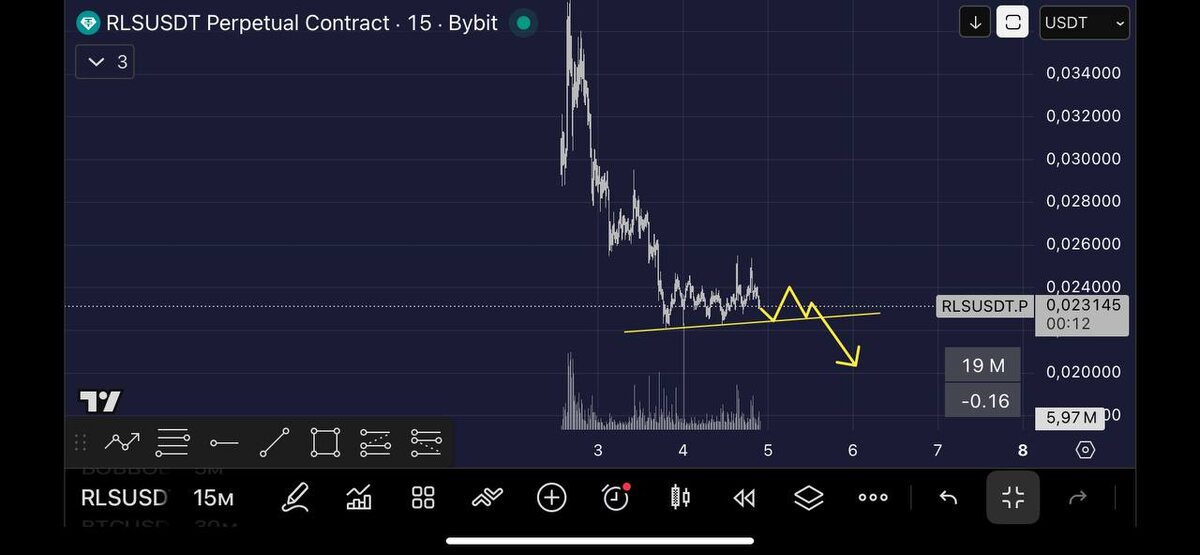 #RLSUSDT Новый листинг, монета падает, расчитываю на продолжение падения.