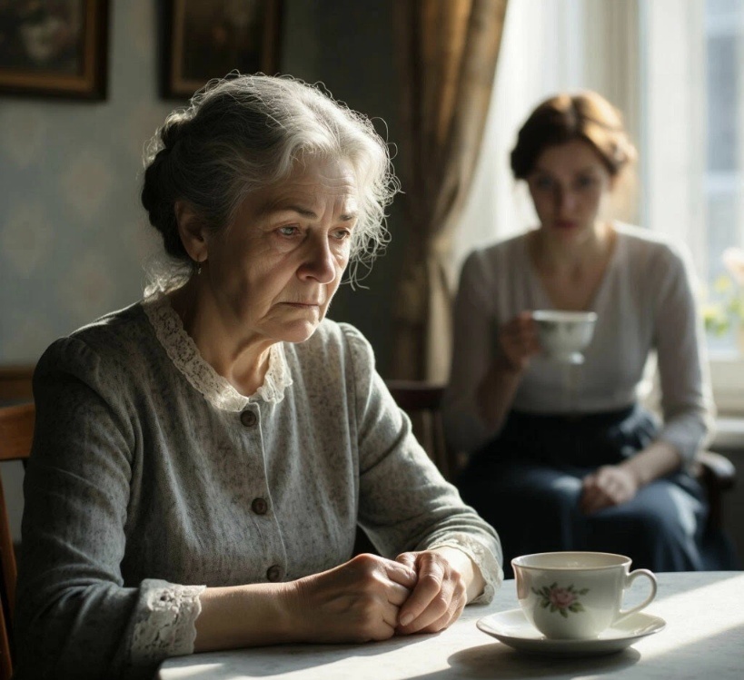 Наступила пауза, заполненная лишь тиканьем старых настенных часов и шумом дождя. Серафима Петровна отпила чаю, поставила фарфоровую чашку на блюдце с тихим звоном. Её лицо стало каким-то отстранённым, будто она решала сложную задачу. Потом она подняла на Анну спокойный, почти безразличный взгляд.