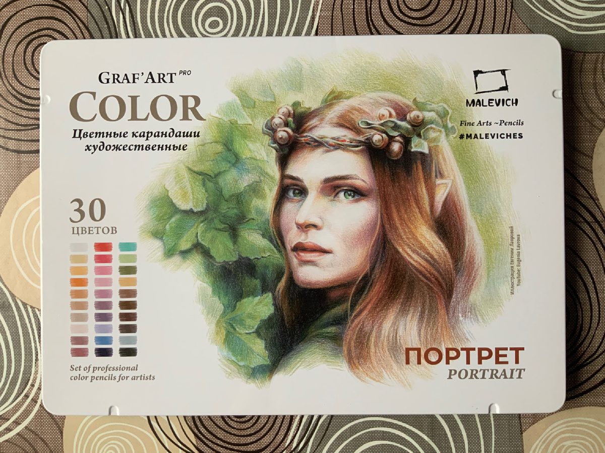 Собственно, вот они, мои новые карандаши. Снова скажу, что недостатка в карандашах у меня нет, но идея этого набора так понравилась мне, что я их взяла :) Это карандаши «Малевич ГрафАрт Про». Несколько таких карандашей, купленных поштучно, у меня уже есть, поэтому я знала, что беру. Карандаши довольно мягкие, по бумаге идут легко, но и фактурные они. Я собиралась взять еще несколько цветов поштучно, но все время что-то отвлекало меня. Да и не хватало мне в этой линейке некоторых особенных оттенков. И вот, они выпустили такой набор, где есть даже мой любимый сизый (серо-голубой) цвет! Он очень похож на тот, что есть в одной из линеек карандашей «Дервент». Только Дервенты дороже гораздо :))) Ну и еще некоторое количество приятных цветов: На мой взгляд, тут не хватает желтого или охры. Если бы такой цвет тут был (и вообще, если бы в наборе было 36 цветов, а не 30), было бы отлично! Я понимаю, что набор тематический (портретный), но все же немного цветового разнообразия не помешало бы.