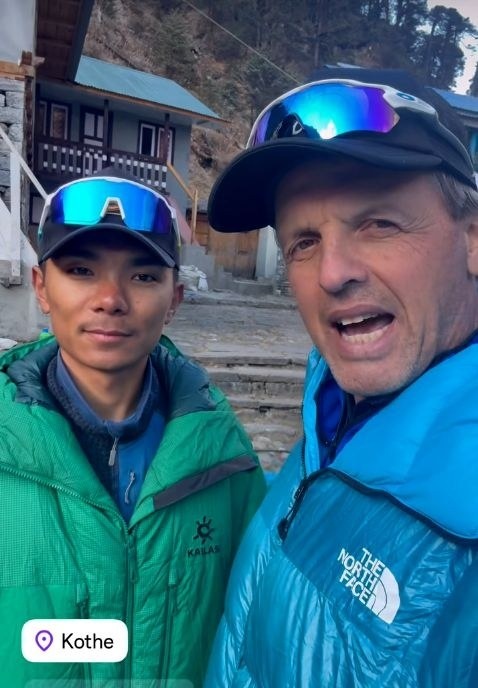 Симоне Моро и Нима Ринджи в селении Коте, в начале пути к подножью Мера пик. Так начинается акклиматизация перед попыткой зимнего восхождения в альпийском стиле на Манаслу.
