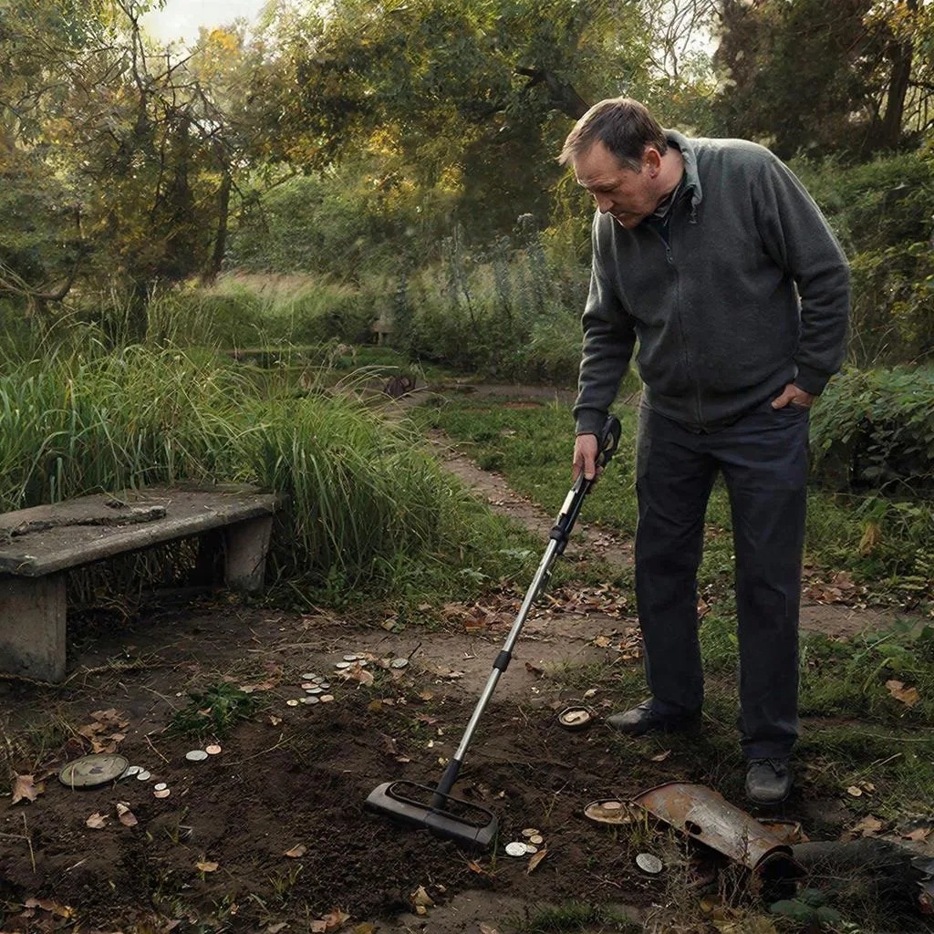 Нашей деревне больше ста лет. Это и стало моим главным аргументом, когда я, наконец, купил «Вихрь-Про». Заброшенных домов у нас много. От иных — только груда кирпичей да остов печи, торчащий из крапивы, как чёрная кость. Но каждый фундамент, я был уверен, хранит свою тайну. Монетку царских времён, потерянную пряжку, пуговицу от мундира — что угодно. Первые вылазки принесли лишь ржавые гвозди, обрывки железа и пару советских копеек. Но азарт горел. Я шёл за писком прибора, как за голосом из-под земли. И вот однажды «Вихрь» взвизгнул особенно настойчиво и чисто — не ржавый хрип, а звонкий, почти мелодичный сигнал. Это было на задворках старого сада у дома тёти Мани, давно умершей. Дом разобрали на брёвна, остался лишь бугорок, поросший лебедой. Я начал копать. Лопата с лёгким звоном ударила обо что-то. Не о камень. Я расчистил землю руками. Из чёрной сырой глины проступил металлический угол, потом ещё один. Ящик. Небольшой, размером с шкатулку, из жести, облупленная краска местами