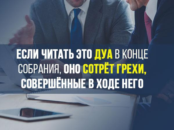 "Слава Тебе, о Аллах, и хвала Тебе, свидетельствую, что нет бога, кроме Тебя, прошу у Тебя прощения и приношу Тебе своё покаяние", то ему непременно простится происходившее на собрании, где он присутствовал. (Тирмизи)