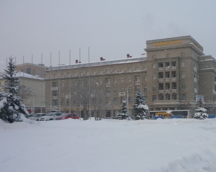 Всем привет! В прошлой публикации начала рассказывать о нашем зимнем путешествии в столицу Башкирии - город Уфу. После Центрального рынка с ёлкой и ледяными скульптурами мы отправились дальше прогуляться по городу. Был довольно холодный (до -25 градусов) январский день. Небо было серым, всюду лежал густой снег. Здание гостиницы "Башкортостан". Филармония с плакатом, поздравляющим с Новым годом на башкирском и русском языках. Утро, летел пушистый снежок. Здание с мемориальными табличками, здесь жил писатель Хасан Мухтар. Фотография кошки, идущей по воде, в витрине. Гуляя в центре, мы оказались у почтамта, где увидели "Нулевой километр". Решили посетить Музей Почты (ул. Ленина), который, к тому же, был бесплатным. Музей небольшой, но познавательный. Знакомит с историей почты в городе, в республике и в стране в целом. С удовольствием посмотрели разные интересные экспонаты. В 2002-04 годах я и сама заведовала небольшим (школьным) музеем, участвовала в краеведческом конкурсе (где