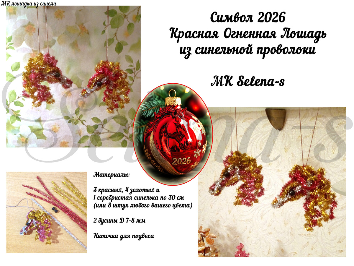 Нет, лошадка 😜 не целиком, а только голова - но для игрушки на елку 💝 вполне себе подойдет! ✨ Прелесть этой лошадки в том, что для нее нужны только ручки (пальчики) и 😁ручка - карандаш. Ну и, разумеется - сама проволока и пару бусинок. Никакого клея, основы и прочих премудростей! Смотрим галерею. Самое веселое - это завивка! 😂 И укладка... И осталось только 🎄 добавить веревочку, чтоб на елку можно было повесить! На следующей неделе и до самого Нового года - будут еще МК всяких новогодних штучек из этих 💕 блестючек! Они, ☝️ если что - перед Новым годом в ФиксПрайсе продаются. Ну или на маркет плейсах по запросу "синельная проволока". А пока ждете публикаций - можете посмотреть предыдущие штучки вот в этой моей подборке - Синельная проволока (шинил). До новых встреч! 😘