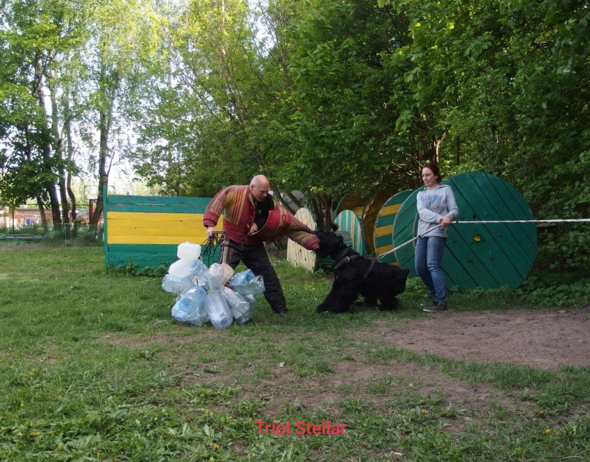 РУССКИЙ ЧЕРНЫЙ ТЕРЬЕР Яна и Алексей Брейкин. ФарингФанг, Москва. Когда начинать делать защиту и надо ли учить собаку? Мы с Яной первый раз поехали на 'кусачку', когда ей было 2,5 года. До этого времени мы учили ОКД и родили даже один помет щенков. В тот момент в Туле надёжного тренера не было, и начали мы ездить в Москву к Михаилу Тимофееву. Мне его порекомендовали знакомые чернышисты, которые с ним занимались. Мы занимались занятий 8. Яна ему очень понравилась. И отпускать её начали уже на 3м занятии. Затем в Тулу стали ездить Эдуард Дымченко и Женя Суслов. Мы стали заниматься в Туле. Т. к. поездки в Мск 230 км *2 . И занимали весь день с 6 до 19 ч с дорогой. Меня познакомили с Сергеем Гореловым, помощником Алексея Брейкина. И мы стали с ним доделывать ЗКС и // готовить АПС. Между делом сдали БХ. Сдали ЗКС. Решили добивать АПС.Снова начали ездить в МСК, к Алексею. Сдали АПС -1 Испытания 1 раз. Яне возраст подходил к 7 годам. Я для себя решила, что мы на 7 остановимся. #рчт #ру
