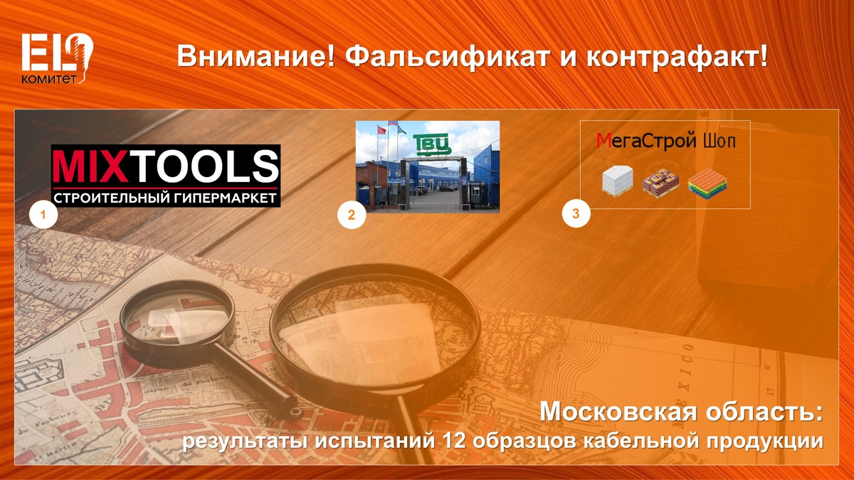 EL-Комитетом получены результаты технических испытаний 12 образцов кабельной продукции, закупленной и отобранной в рамках мониторинга в 3 крупных розничных магазинах электротехники на юго-западе Московской области: 🔥MIXTOOLS (ТЦ «Можайский двор»); 🔥МегаСтройШоп; 🔥ЭЛЕКТРИКА («ТВЦ Строй»). В соответствии с протоколами, выданными аккредитованными испытательными центрами, во всех 12 образцах зафиксированы различные отклонения от требований качества и безопасности ГОСТ. Хотим акцентировать внимание наших читателей на следующих обстоятельствах: 1️⃣ Продукция NoName (без какой либо сопроводительной документации) массово и безнаказанно реализуется в крупных торговых точках Подмосковья. Отклонения по таким параметрам, как толщина изоляции и электрическое сопротивление ТПЖ в образцах NoName достигли более 50% от нормы. 2️⃣ В одном ряду с фальсификатом NoName стоят образцы кабельных изделий «торговых марок-призраков» (ПРОТОН, ЕВРО-КАБЕЛЬ и ТКЗ), а также ряд «марок-двойников» известных произво
