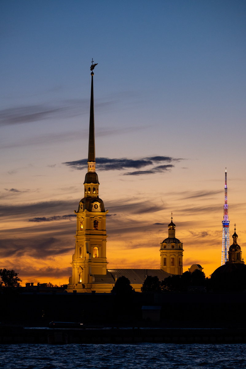 Петропавловский собор (собор во имя первоверховных апостолов Петра и Павла)! Собор находится в центре Петропавловской крепости, на Заячьем острове. Построен Собор в 1712–1733 годы. Высота колокольни с шпилем: 122,5 метра. До 2012 года (строительства небоскрёба «Лахта-центр») это было самое высокое здание в Санкт-Петербурге. Собор служил усыпальницей российских императоров и членов императорской семьи, начиная с Петра I. Здесь похоронены почти все русские императоры от Петра I до Александра III (кроме Петра II и Ивана VI), а также члены их семей. Согласно городской легенде, три ангела охраняют Санкт-Петербург: золотой на шпиле Петропавловского собора, бронзовый на Александровской колонне и серебряный на куполе церкви Святой Екатерины. Пока они парят над городом, ему не страшны беды. Флюгер Собора (помогает определять направление ветра)- это фигура летящего ангела с крестом в руках, венчающая шпиль колокольни. Крест в руках ангела символизирует победу христианства.