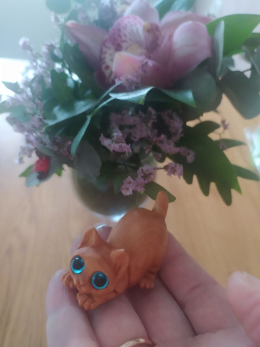 А еще мне подарили чудо кися-кот из дерева, это ручная работа.