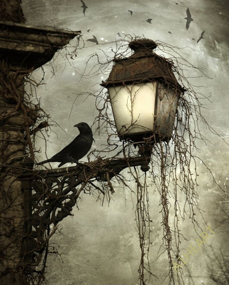 На заброшенной железнодорожной станции, куда уже десять лет не приходили поезда, жил старый фонарь. Его когда-то яркое стекло покрылось трещинами и пылью, металл проржавел, и никто не вспоминал, как когда-то он освещал путь пассажирам, встречающимся и расстающимся. Однажды осенью на фонарь присела ворона. У неё было сломано крыло — неудачная стычка с грузовиком на трассе. Она не могла летать далеко и решила отдохнуть на этой покосившейся металлической конструкции. Фонарь молчал. Ворона тоже. Так прошёл день. На следующее утро ворона, превозмогая боль, слетела вниз и нашла несколько замёрзших ягод у заросших путей. Вечером она вернулась на фонарь — это место стало её пристанищем. Так началась их странная дружба. Ворона приносила то блестящую пуговицу, то кусочек фольги и оставляла на козырьке фонаря. Фонарь, конечно, не мог взять эти дары, но когда ветер пытался унести их, он своим телом заслонял порывы, храня скромные подношения. Зимой стало тяжело. Ворона почти не могла находить еду.