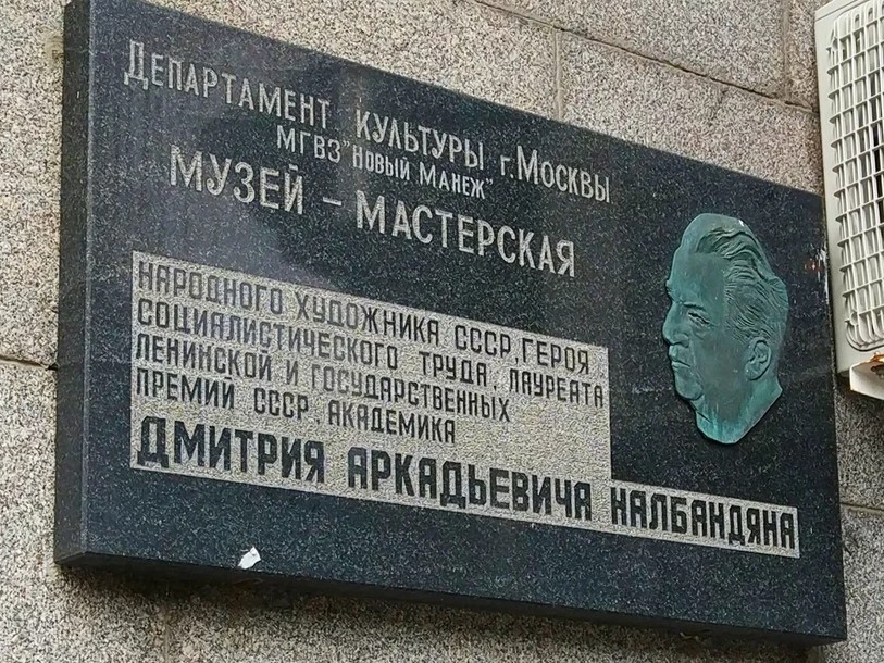 Однажды приятным днём ранней осени я, гуляя по центру Столицы, забрёл на Тверскую площадь и рассматривая мемориальные доски на доме № 8, увидел вот такую Сразу вспомнились далёкие годы студенчества. Тогда нас заставляли изучать книги, написанные тогдашним генеральным секретарём ЦК КПСС Л. И. Брежневым. Его творение "Малая земля" я читал в каком то политическом журнале, по моему это был журнал "Октябрь". Там в качестве иллюстрации была представлена репродукция картины Дмитрий Налбандян. Леонид Ильич Брежнев на Малой Земле (фото из интернета) Конечно я слышал об этом художнике и даже хотел сходить на его персональную выставку, которая проходила в конце 2023 в начале 2024 года в Московском музее современного искусства, но так и не сходил, о чём сейчас жалею. Потому я решил пойти в этот музей. Просторное помещение для творческой мастерской на девятом этаже жилого дома художник Дмитрий Налбандян получил в 1956 году. Годом ранее, в мастерской института "Моспроект", было создано проектное