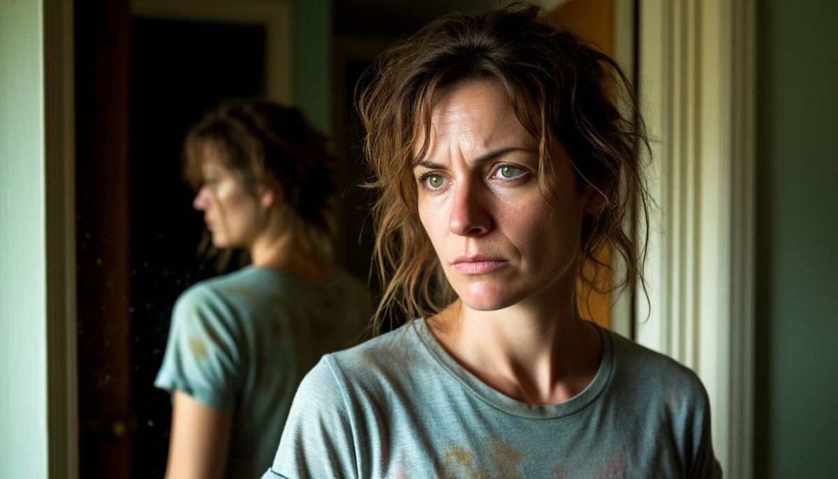 В отражении — женщина тридцати семи лет, с подутыми глазами, в растянутой футболке. Тень.