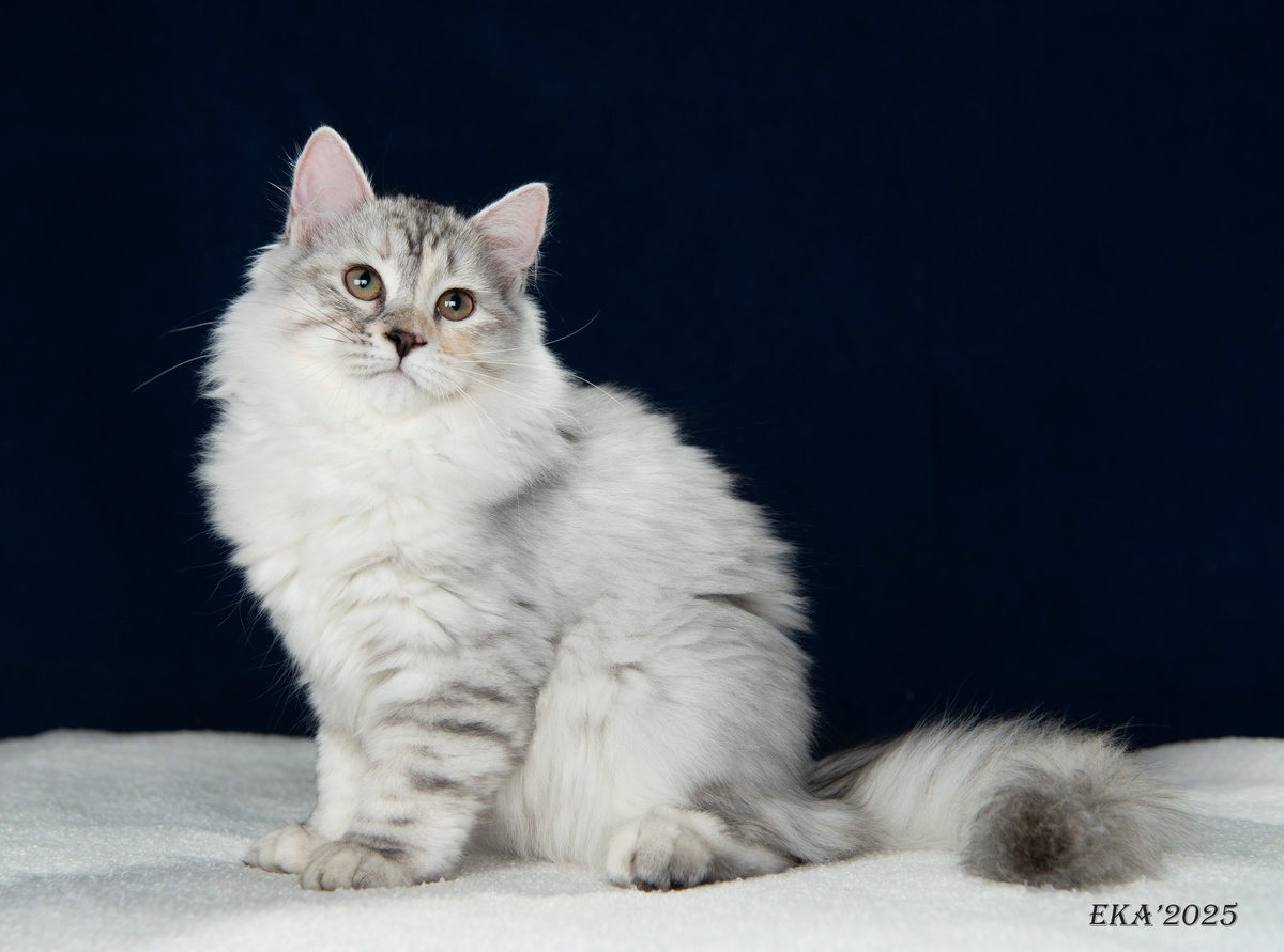 Снежный цветок Fluer de neige, окрас черный серебристый черепаховый пятнистый табби, дата рождения 10 июля 2025