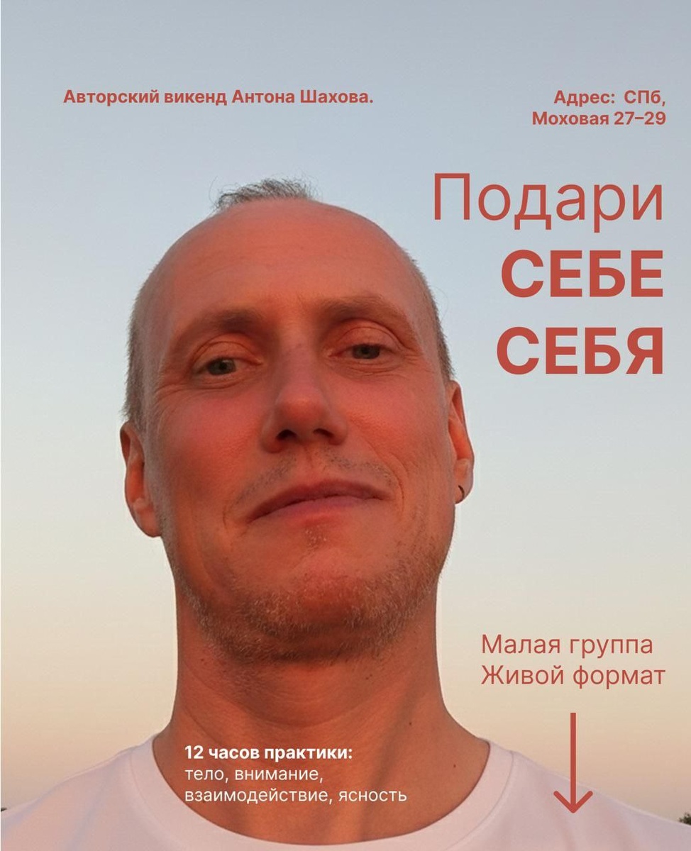 🎁 К новому 2026 году — подари СЕБЕ СЕБЯ 📅 20–21 декабря 2025 Два дня, чтобы вернуться в себя после длинного года: снять внутреннее напряжение, услышать собственный голос под шумом задач и снова почувствовать направление, которое по-настоящему твоё. ✨ Авторский ВИКЕНД-ТРЕНИНГ Антона Шахова 🕒 12 часов практики, собранной в цельную, логичную канву. Работа через тело, внимание и ясное мышление — так, чтобы состояние не растворилось через три дня, а действительно закрепилось. 🔹 В программе: – 🌿 телесные и дыхательные практики для разгрузки и восстановления опоры – 🎯 работа с вниманием и внутренним центром – 🤝 упражнения на контакт, границы и ясное восприятие – 🧩 ментальные “прояснения” для понимания, что действительно важно – 🔥 тёплое и безопасное пространство маленькой группы Это не про “план на год”. Это про то, чтобы встретить Новый год целым, живым и энергичным, а не собранным из остаточного ресурса. 🎁 Подарок: индивидуальная пост-сессия после семинара. 📍 СПб, Мохова