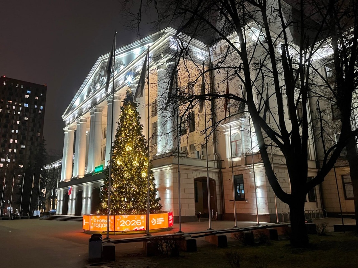 Ёлка у главного корпуса МЭИ Адрес: Красноказарменная улица, 17 Источник: архив lefortovo_today