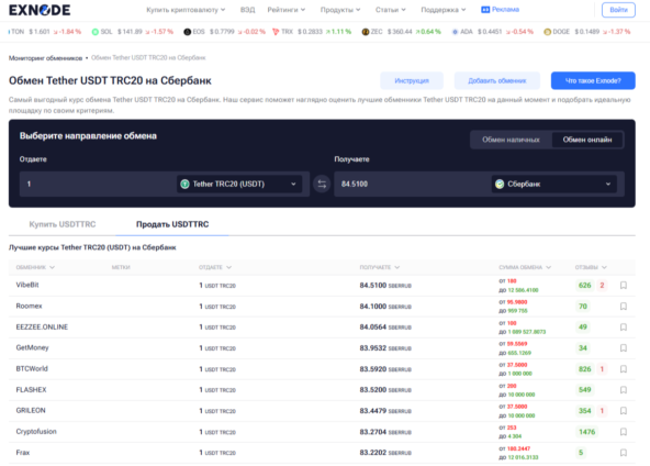 - Используйте мониторинги. Такие агрегаторы, как Exnode, незаменимы для объективного сравнения. Они показывают актуальные курсы, резервы, лимиты и репутацию десятков криптообменников в реальном времени. Это лучший способ найти выгодный и безопасный обменник крипты на карту.