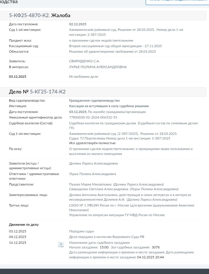 ⚡️Срочно! Судебное заседание в Верховном суде по делу Ларисы Долиной назначено на 16.12.2025 Начало заседания: 15:00. Зал судебных заседаний: 3078 Значит вчера дело уже было в Верховном суде Все новости по делу обязательно размещу на канале. #долина #эффектдолиной #квартира #мошенничество #сделка #жилье #лурье #ларисадолина