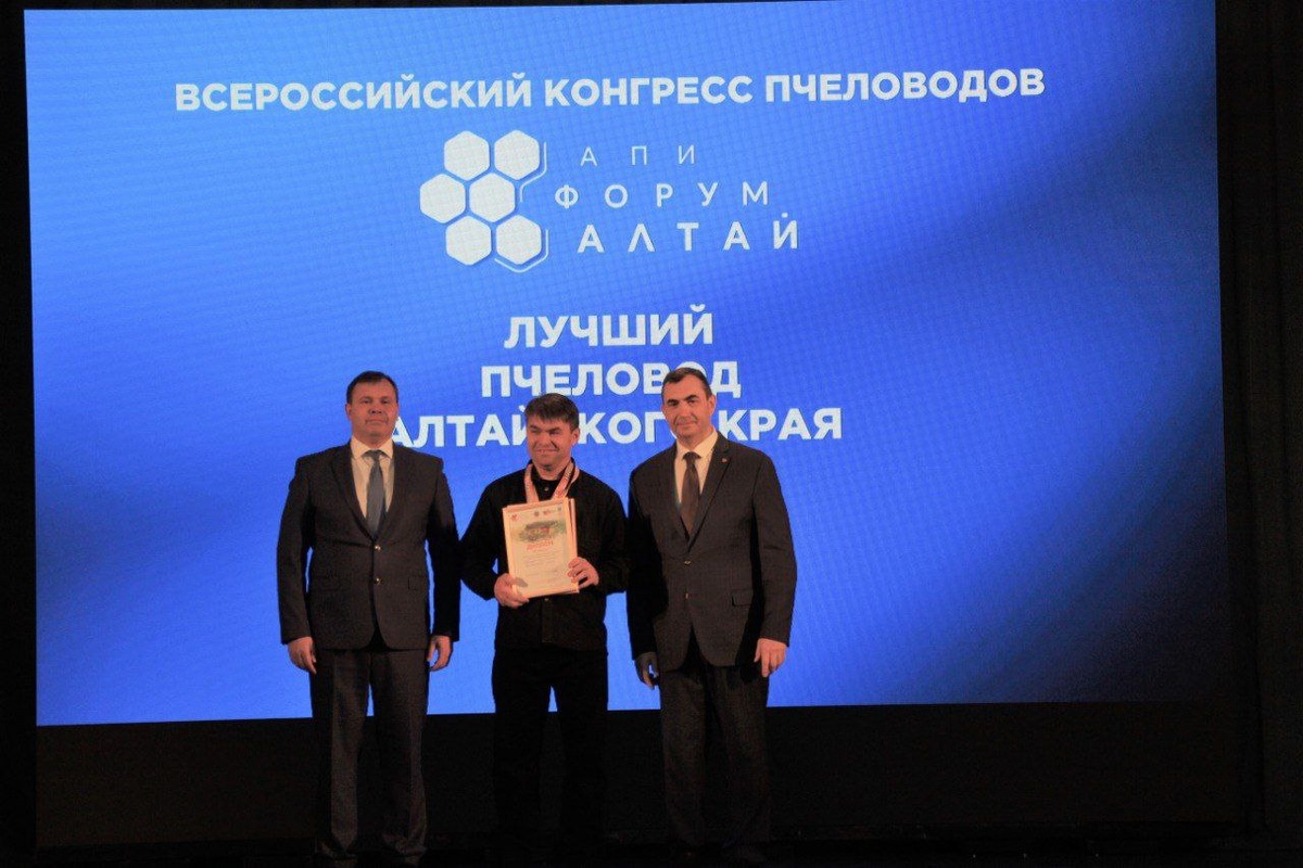 На Всероссийском конгрессе «Апифорум Алтай» назвали имена победителей регионального конкурса «Лучший пчеловод Алтайского края». Дипломы призеров, памятные медали и сертификаты на премии им вручили заместитель Министра сельского хозяйства России Роман Некрасов и министр сельского хозяйства региона Сергей Межин. По итогам трех этапов конкурса третье место занял Олег Скворцов из Калманского района. Вторуое завоевал Асатур Солоян из Кулундинского района. Абсолютным лидером конкурса признан Егор Кудинов из Шелаболихинского района.
