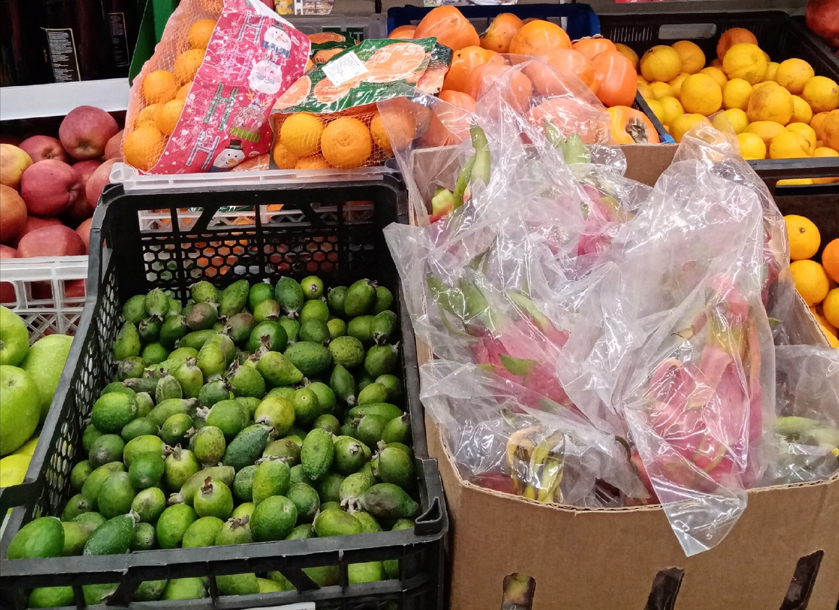 Да, неэкономно совсем. Особенно когда рядом лежит морковка и ее ценник с укоризной на тебя смотрит. Но, не смогла я сегодня пройти мимо этой чудо-ягоды с таким замысловатым названием - фейхоа. Давно хотела купить и попробовать наконец. Случилось! Как растет фейхоа я, кстати, видела в Абхазии. Там же угощали компотом из нее, расхваливали ягоду (или это фрукт?), мол так много в ней витаминов, такая целебная! Но, когда мы приезжали в Абхазию, фейхоа эта была еще незрелой. И в августе, и в сентябре. Созревает она к ноябрю только. Выбрала я из ящика несколько плодов, а дома уже посмотрела в сети как их едят и что там содержится. Едят, оказывается, этот плод целиком, с кожурой. Можно и без кожуры - я в начале так и пробовала, но пишут, что кладезь полезностей фейхоа содержится именно в кожуре. Мякоть напоминает землянику. Понравилась! Попробовала с кожурой, как советуют в сети. Съедобно. А какой тонкий аромат у этого чуда южной природы! Прочитала, что ароматна только хорошая, с