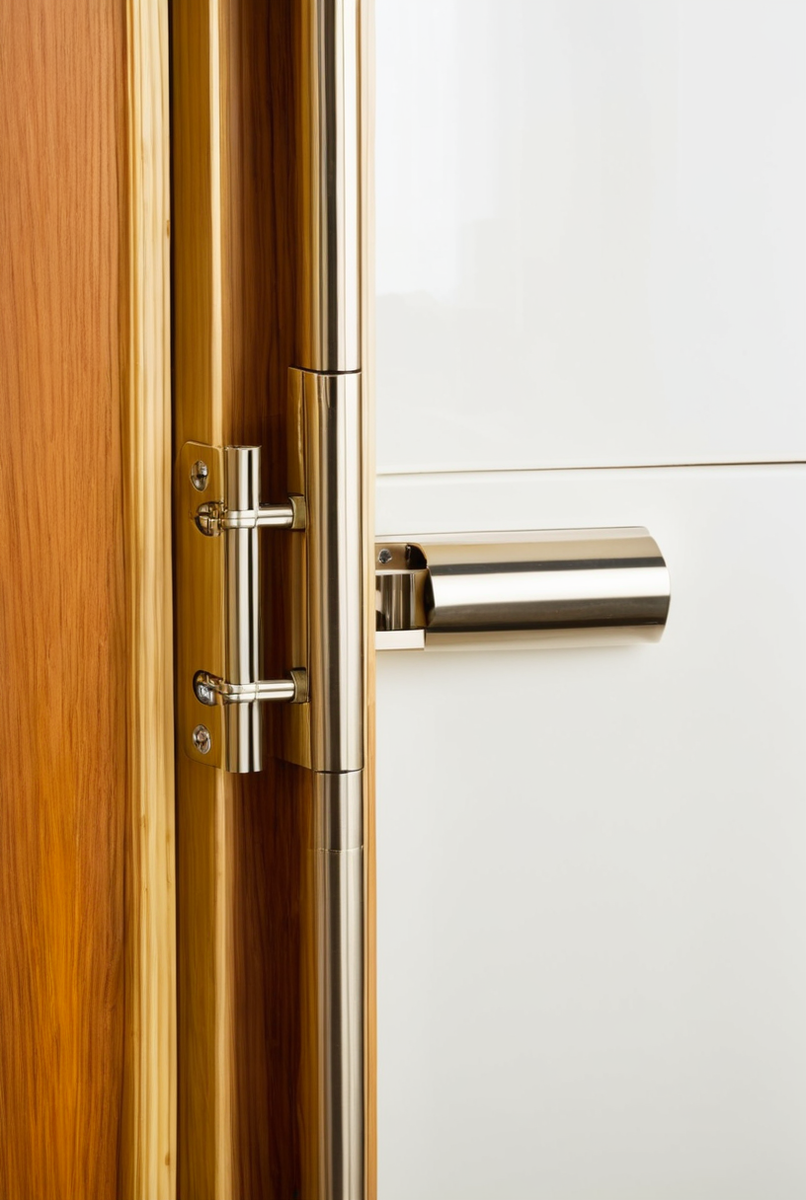 В основе работы лежит уникальный пружинный механизм, который и превращает дверь в настоящую дверь-качалку. Такая пружинная петля — это классическая петля двойного действия. Её ключевое свойство — двустороннее открывание: полотно можно толкать в обе стороны, что незаменимо в местах с высокой проходимостью.