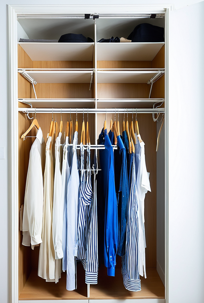 Для идеального компактного хранения без складок, вешайте самые длинные и тяжелые вещи (например, пиджаки) на нижние ярусы каскада, а более легкие и короткие (рубашки, блузки) — на верхние. Это обеспечит равномерное распределение веса и предотвратит сминание одежды друг о друга. Такая простая сортировка значительно улучшит состояние вашей гардеробной системы.