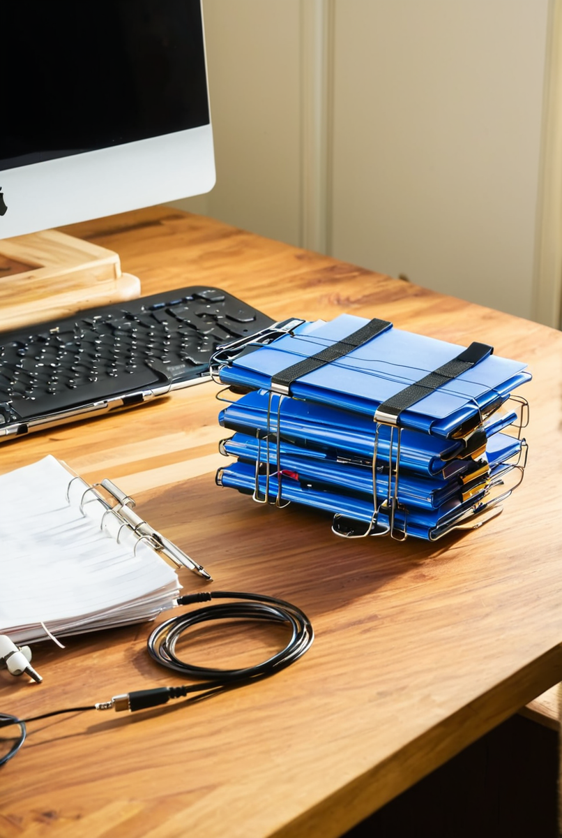- Вертикальное хранение: Закрепите несколько биндеров на краю полки. Каждый зажим — это слот для отдельной категории документов («Счета», «Проекты»), что значительно экономит место.