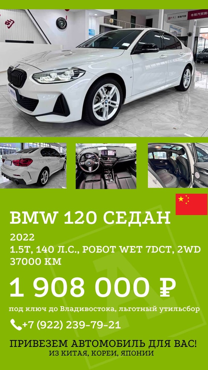 BMW 1-серия Китай VS Корея Понравился автомобиль? Звоните 📲 8-922-239-7921 (Telegram/WhatsApp) Автоинтент - надежный поставщик автомобилей с 2020 года! Выгоды от Автоинтент: ➡️ авто под заказ из Китая, Кореи, Японии дешевле, чем у вас в городе на 30%; ➡️ трейд-ин (кредитные, залоговые, быстрая оплата); ➡️ комиссионная продажа вашего авто; ➡️ кредит наличными до 1,5 млн. до 7 лет, по паспорту, без подтверждения дохода (заявка онлайн, выдача быстро). Гарантия покупки: ✅ Техническая проверка автомобиля перед покупкой, фото/видео отчет. ✅ Предпродажная подготовка. ✅ Реальный пробег и прозрачная история. ✅ Гарантия 1 год на двигатель, трансмиссию, прочие узлы и агрегаты (можно оформить у нашего менеджера). ✅ Проверка полноты уплаты таможенных пошлин и сборов. ✅ Фиксированная цена в договоре, без доплат и скрытых комиссий. ✅ Сопровождение клиента на каждом этапе от выбора автомобиля до постановки на учет. ✅ Страхование авто в пути следования в ваш город. Консультации бесплатно по тел.