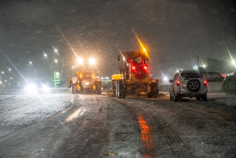 📌Дорожники борются с экстремальной обстановкой на камчатских трассах Более 50 человек и 50 единиц техники заняты на ликвидации последствий циклона на федеральной трассе и дорогах краевого значения, сообщили агентству «КАМЧАТКА-ИНФОРМ» в дорожно-строительной компании «Устой-М». Как сообщил управляющий директор компании Владимир Каюмов, на федеральной трассе А-401 и на дороге от Петропавловска-Камчатского до Пущино ночью работали шнекороторы, грейдеры, погрузчики и КДМы — расчищали проезжую часть, тротуары, пешеходные переходы, автобусные остановки, светофорные площадки, а также занимались отгоном воды с дорог. Работа для дорожников не из легких из-за того, что тяжелый снег, напитанный водой, быстро спрессовывается и с трудом поддается уборке. Периодически на большинстве участков отсутствовала видимость и, во избежание ДТП, приходилось останавливать работы. С утра техника продолжает расчищать автобусные «карманы», остановки, обрабатывать дороги пескосоляной смесью. Затем продолжит уб