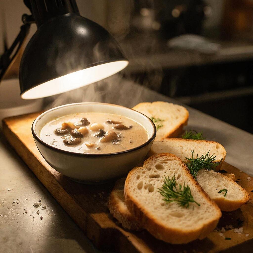 Первую ложку нужно пить, а не есть. Горячий, шелковистый, он обволакивает всё внутри. Грибной дух — не резкий, а глубокий, как запах мха после дождя. Сливки не заглушают, а подчёркивают. Картофель — нежный, но не разварившийся.