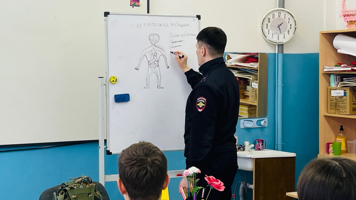 В рамках «Полицейского класса» в Партизанской школе для учащихся 8–11 классов прошел познавательный урок по тактической медицине